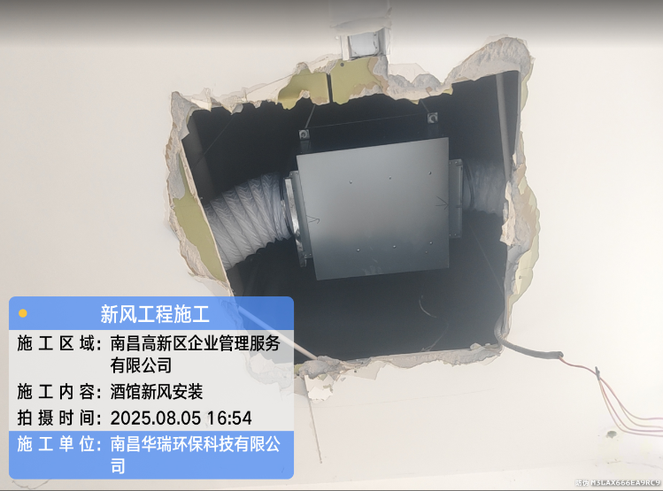 項目名稱:南昌高新企業(yè)管理服務(wù)有限公司新風(fēng)安裝施工時間:2025年8月5日