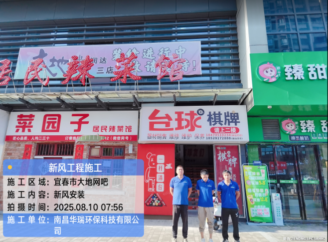 項目名稱:宜春市大地網(wǎng)吧新風(fēng)安裝施工時間:2025年8月21日