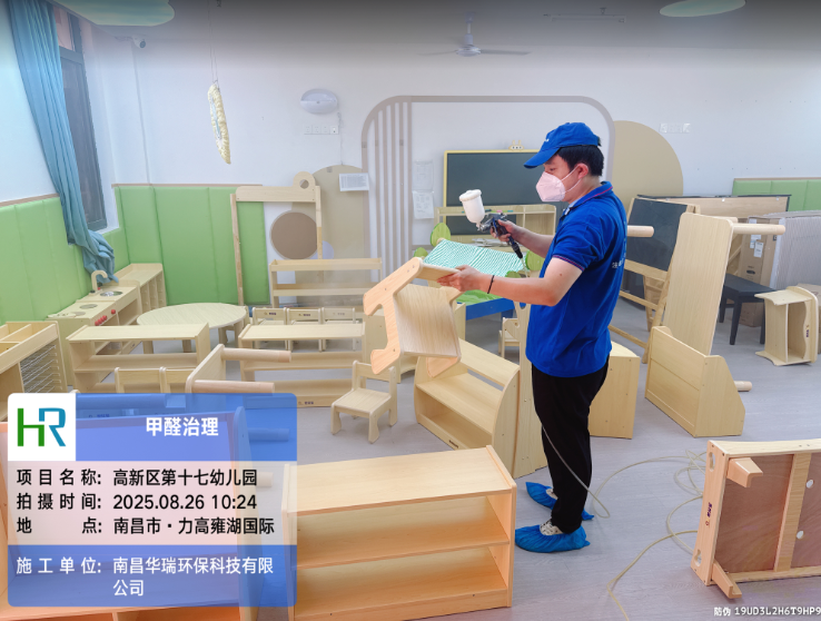 項目名稱:南昌市高新區(qū)第十七幼兒園甲醛治理施工時間:2025年8月26日