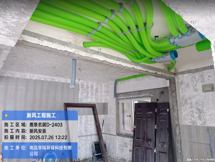 項(xiàng)目名稱:鹿景名居D-2403新風(fēng)安裝施工日期:2025.7-26