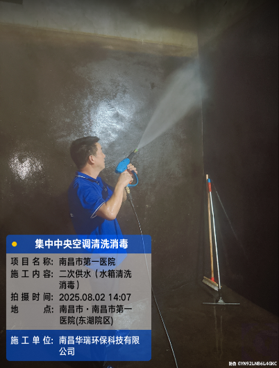 項(xiàng)目名稱:南昌市第一醫(yī)院二次供水水箱清洗消毒施工時間:2025年8月2日