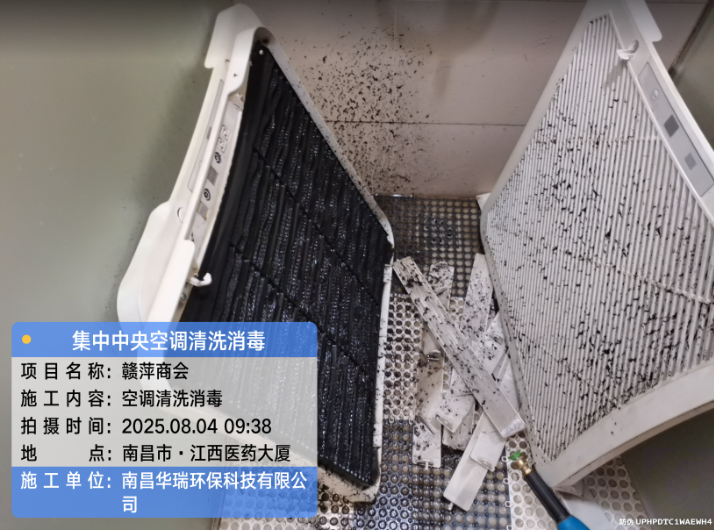 項(xiàng)目名稱:贛萍商會集中空調(diào)清洗消毒施工時間:2025年8月4日