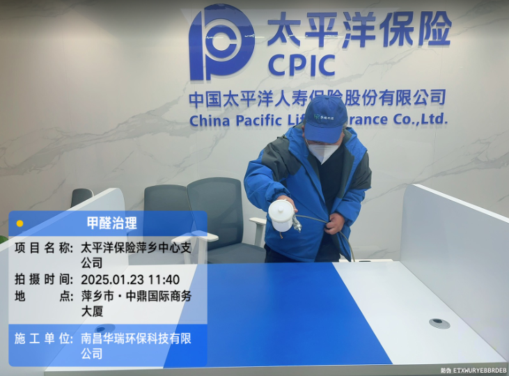 項目名稱:太平洋保險萍鄉(xiāng)中心支公司甲醛治理施工日期:2025.1.23